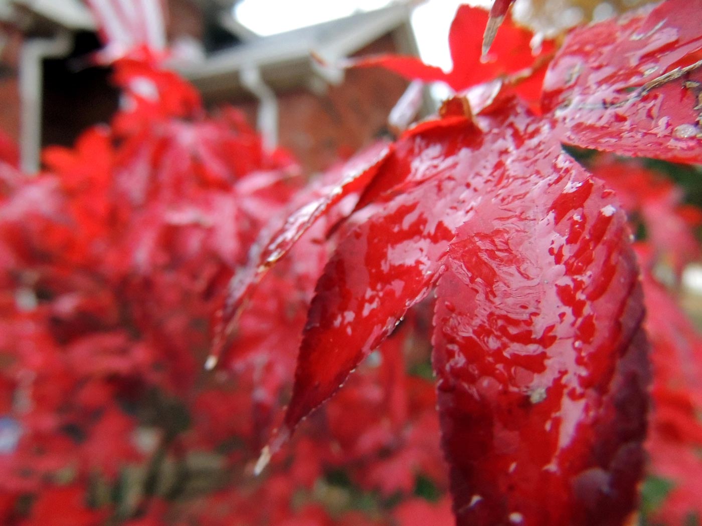 Went to visit a friend before the weather got crazy. Her Japanese Maple turned this vibrant red in this cold weather. And with the rain beginning to freeze on it's leaves they really began to shine.