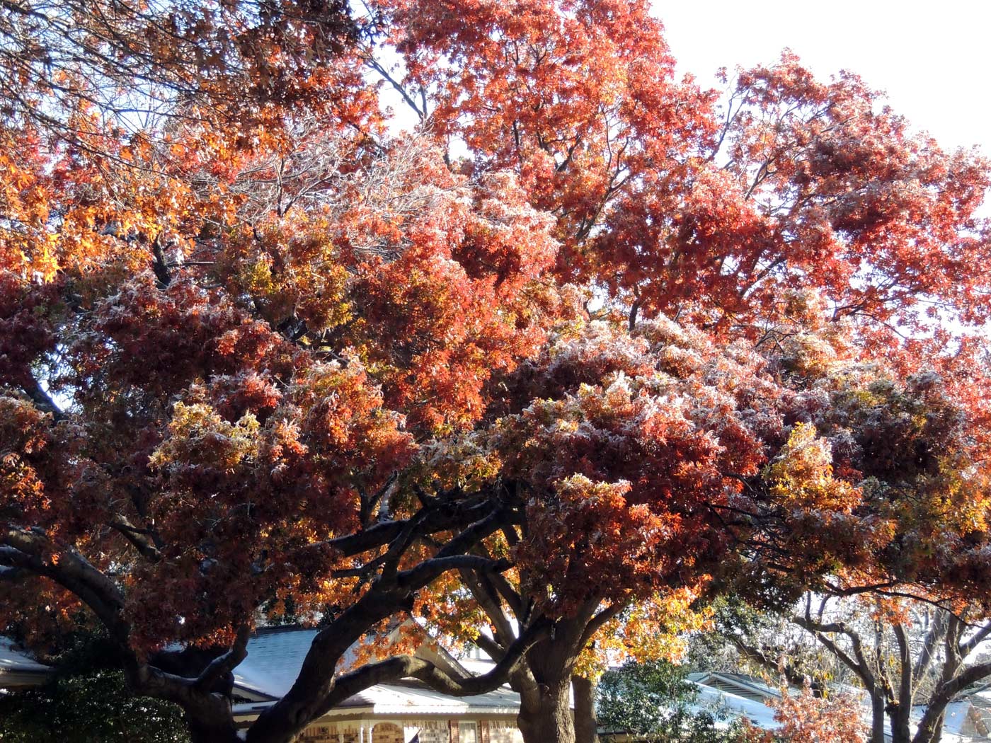 The ice is almost gone from the trees and the branches aren't sagging like they were this weekend. Our normal December weather and colors are coming back.