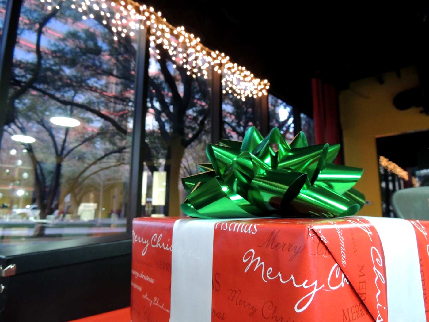 My first official Christmas present is wrapped. It was delivered to the office and I had some paper, ribbon and bows at work. I still have a lot of wrapping to do and only a little bit of shopping.