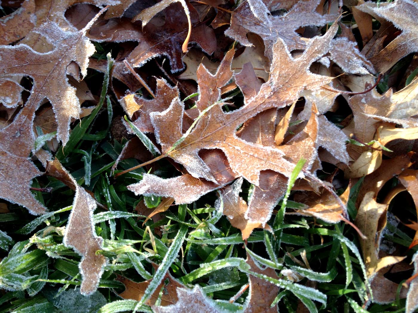 I took Grace out for her morning walk. The frost is on the edge of everything on the ground. It makes everything look fuzzy.