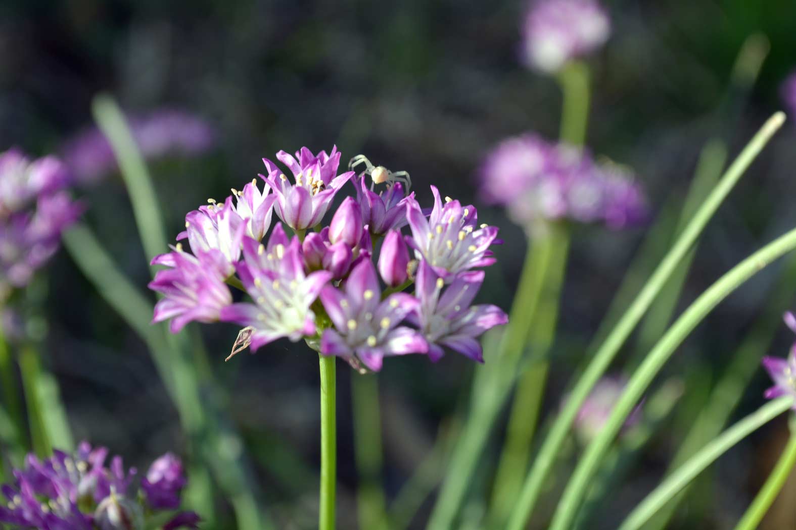 This is growing in my front yard. I stopped to take a picture when I took Grace out this afternoon. There's a little guy spider-bombing my photo. Though I think that's his backside, so maybe I'm being spider-mooned.
