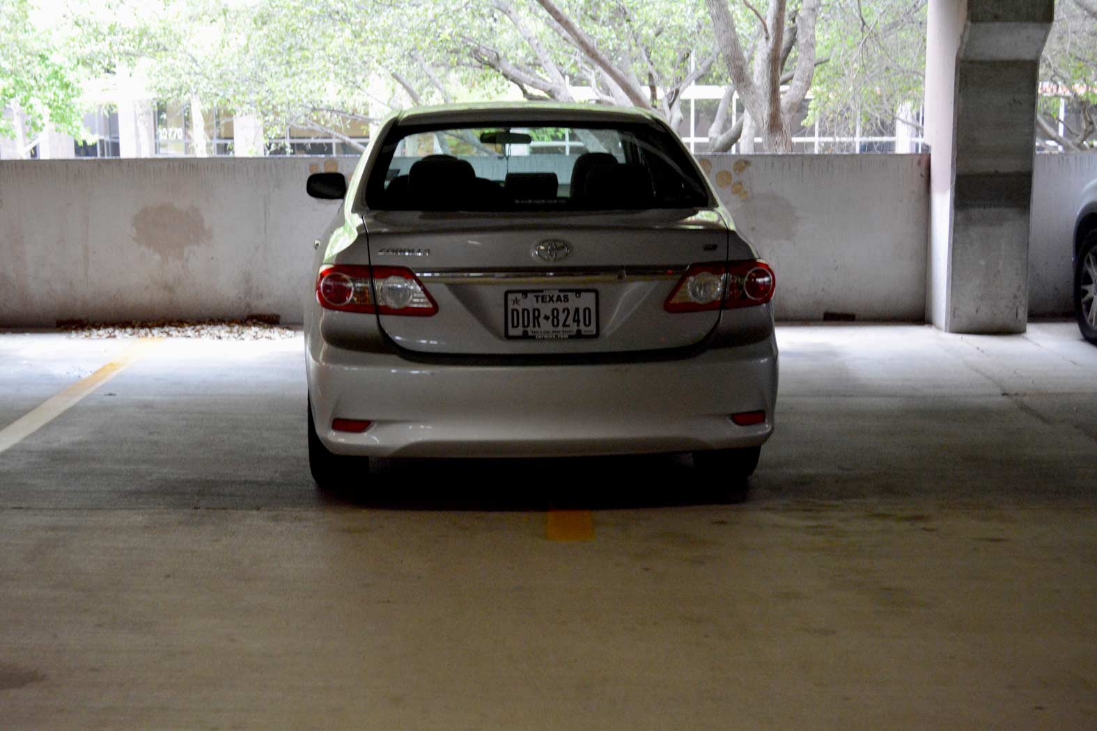 The person in this car parks their car like this almost every day. Granted the spaces there are really tight, but seriously, these spots are closest to the building. I may have to get some sidewalk chalk to make "special" parking lines.
