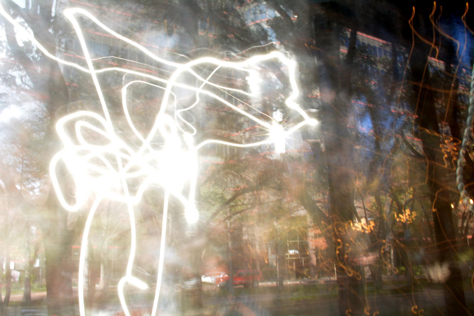 At this time of the year the sun reflects off the building behind me and shines right on my desk. I turned to take the picture and my camera was still set for last night's photo. This ended up being more interesting than the photos I took after.