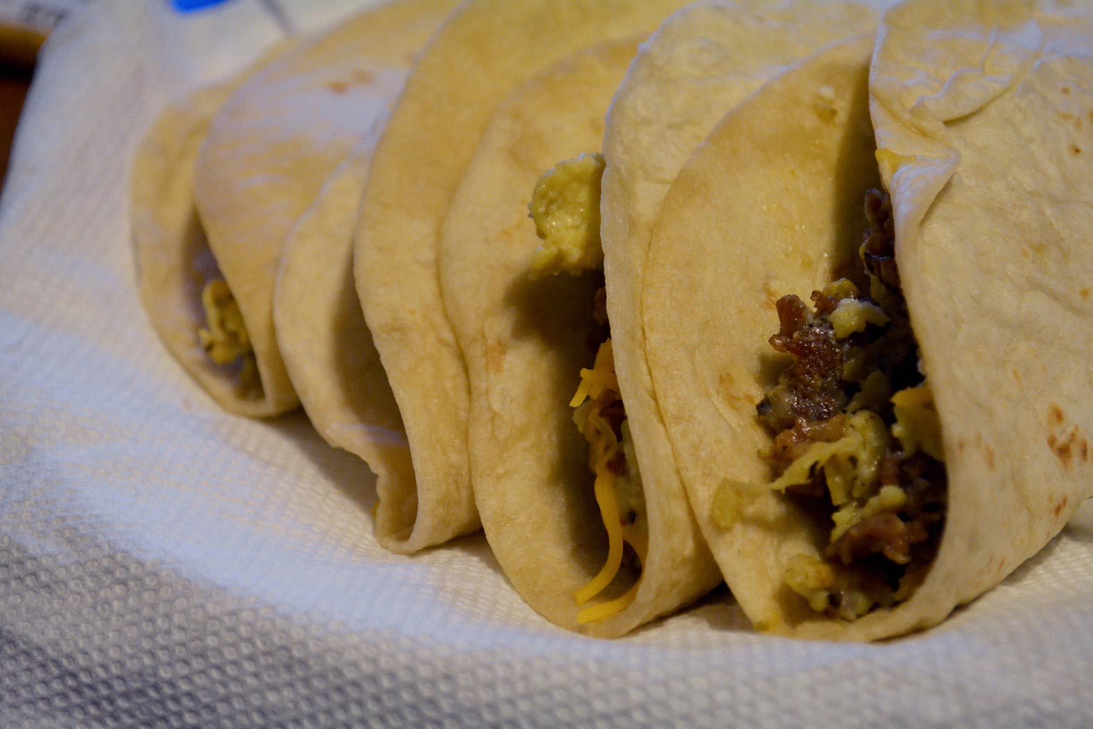 I've been thinking about street tacos for the last couple of days. There's a taqueria not too far from my house but I went to the grocery store instead and made breakfast tacos for dinner. The Kroger by my house sells tortillas that are made in store and they're pretty good.