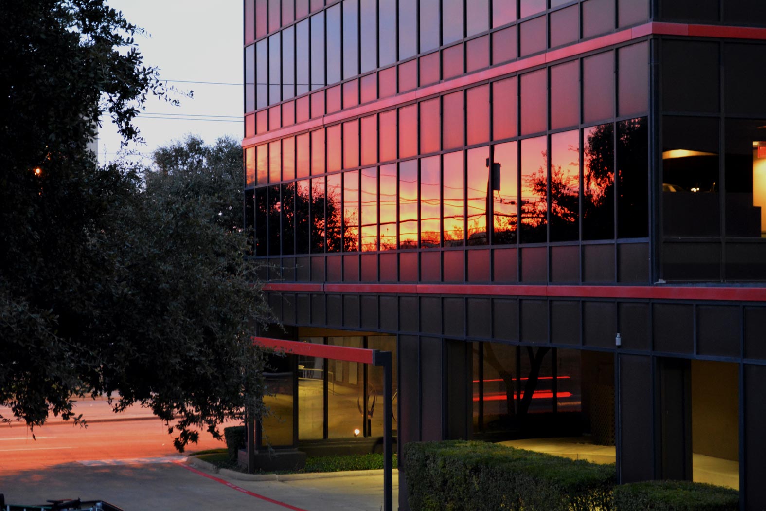 I was walking out of the office after work. It was a beautiful sunset and the reflection on the south side of our building I thought looked really interesting.