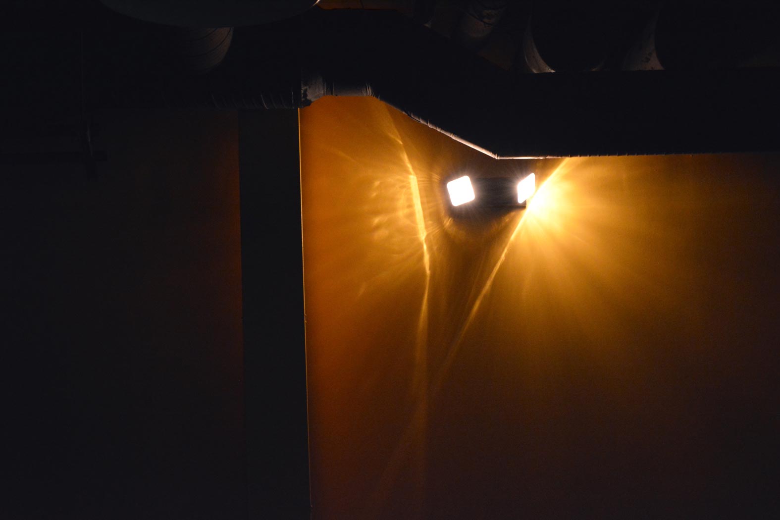 A crazy storm blew thru the metroplex today. The lights went out in our building for a while. These are the emergency lights. There were lots of broken trees and fences in my neighborhood and as of midnight the electricity is still out.