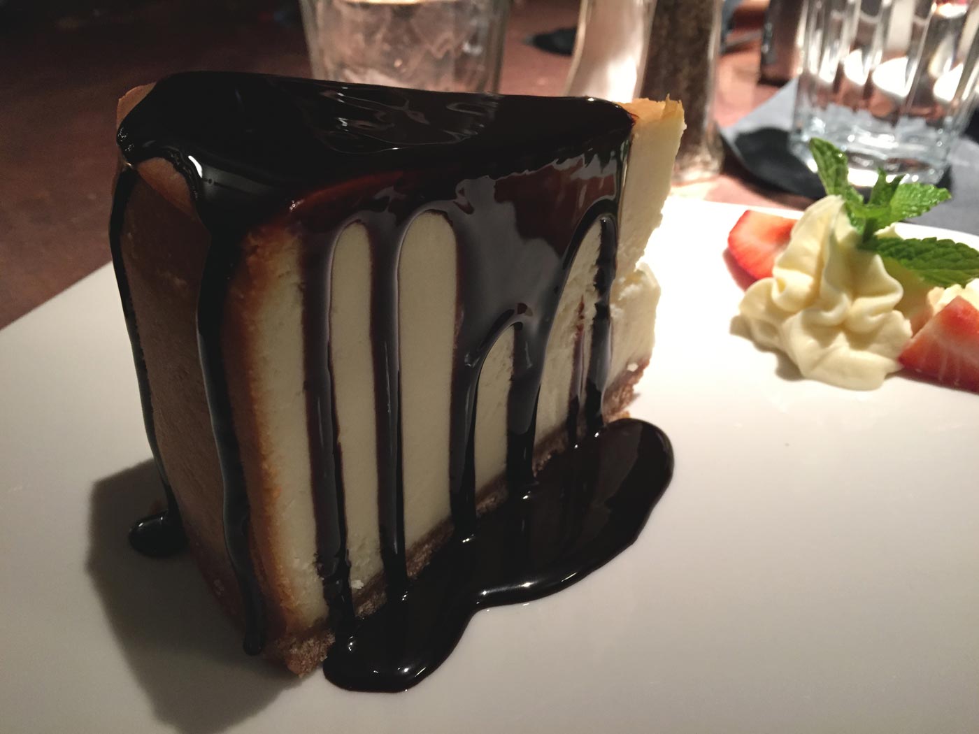 I went out for drinks and dinner with some friends. The menu at this place had Cheesecake with raspberry puree and another dessert with chocolate sauce on the side. Well, I had to make the obvious substitution and I think it should be added to the menu because it was delicious.
