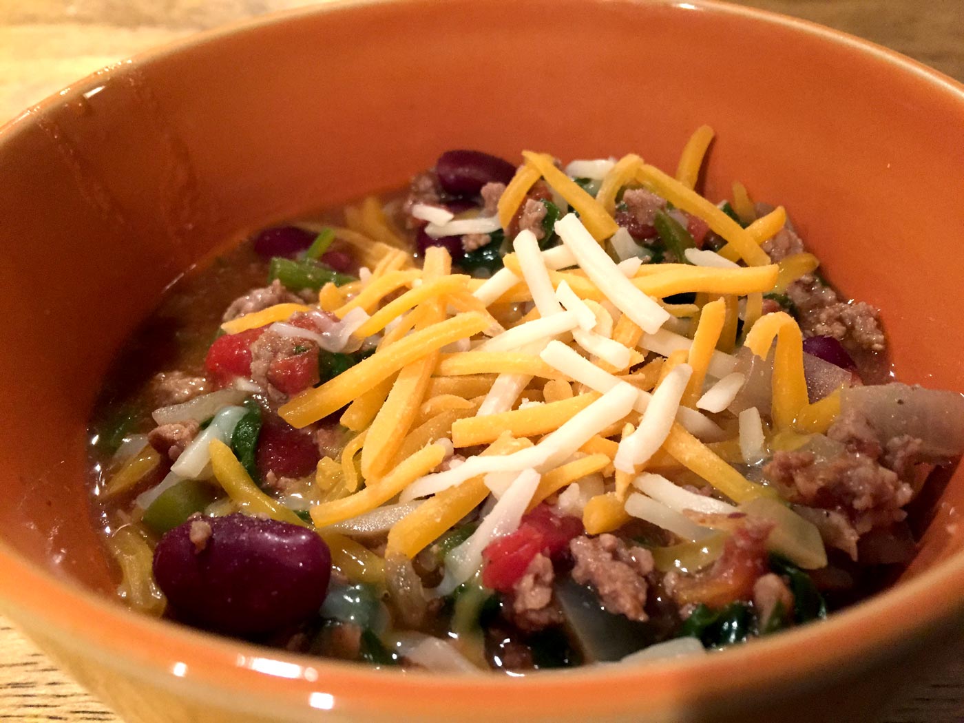 This is my friends idea of chili. As a last minute addition, because she didn't have cornbread, she made some grits as an experiment. They're under the chili. Now I don't know if that's a thing already, but if not it should be! This was so amazing and delicious.