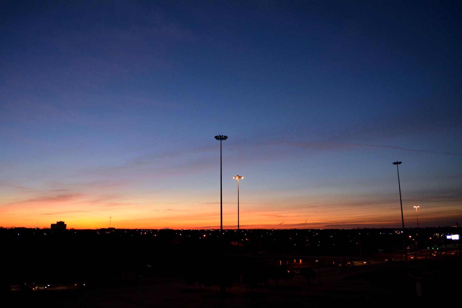 We stayed up late to finish the last couple of episodes of The Walking Dead after dinner last night. Their flight left this morning while it was still dark. I got back to the office a little after 7am. This is from the roof of our parking garage. I went into the office and slept on the couch for an hour and a half.