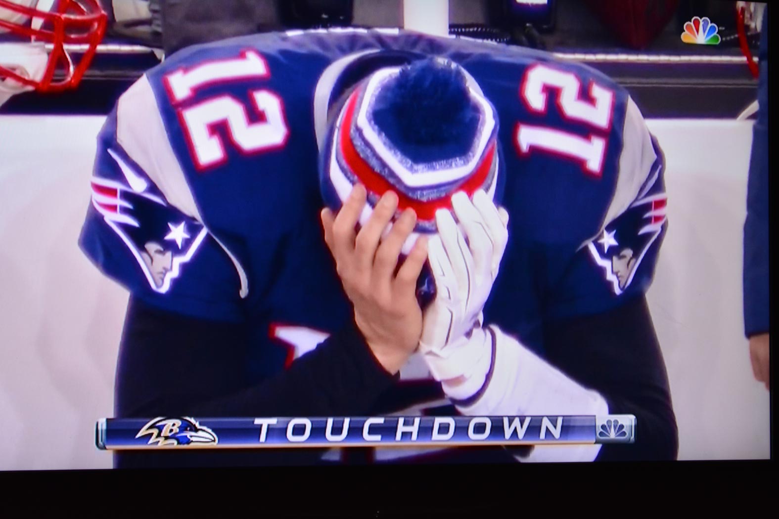 This was the best part of the this game. I'm not a Pats fan. This was shortly after Brady threw a interception when the Ravens scored a touchdown. Too bad the Ravens couldn't hold on to either of their leads to get the win.