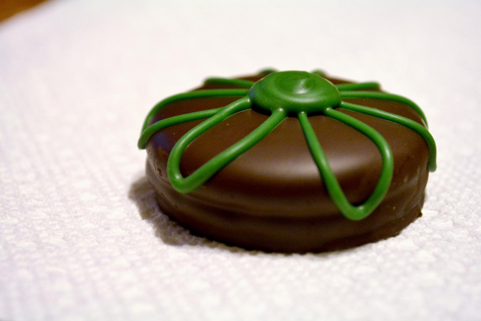 While I was visiting my friend yesterday we exchanged Christmas presents, finally. Part of my gift were these decorated chocolate covered Oreos. I should have saved one of the prettier ones for a picture, but they didn't survive long enough. I saved the dark chocolate one for last.