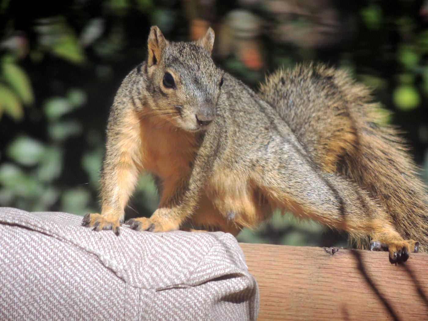 "I'm a fierce, rabid squirrel." If you haven't seen Over the Hedge you should. On another note it was a beautiful day out. Looks like I have a friend enjoying my patio furniture.