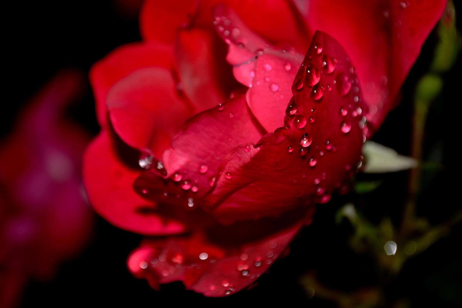 I went out to take the dogs for a walk. It rained a bit before we left. The light from a street light looked nice but I needed the flash to get a clear photo.