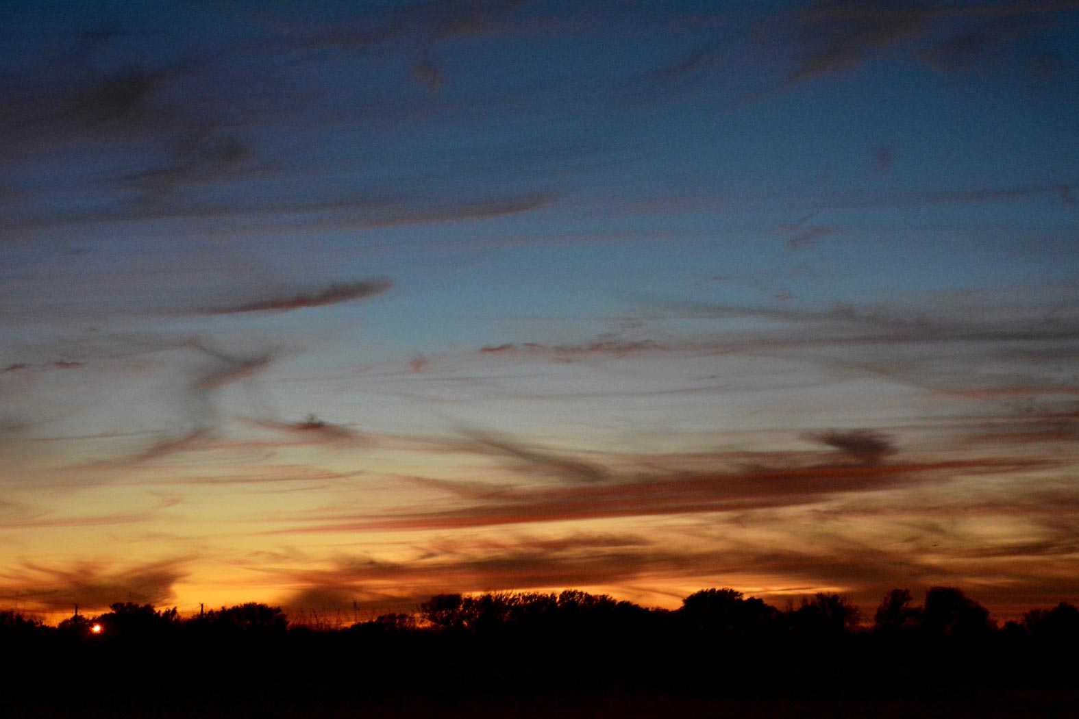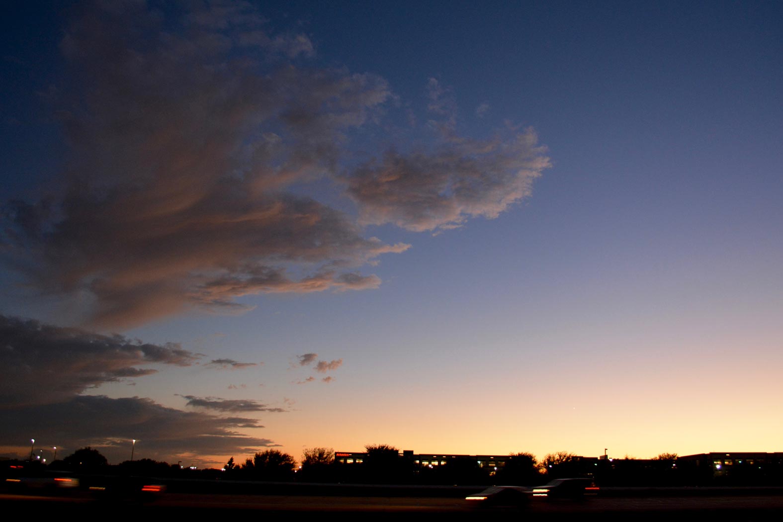 I went to meet a friend for dinner after work. Just as I was getting on the highway the sunset looked beautiful, but I was doing 75 during rush hour on 635 so I thought it wasn't a good time to try to get a photo. This was little while later, still 635, but at a complete stop.