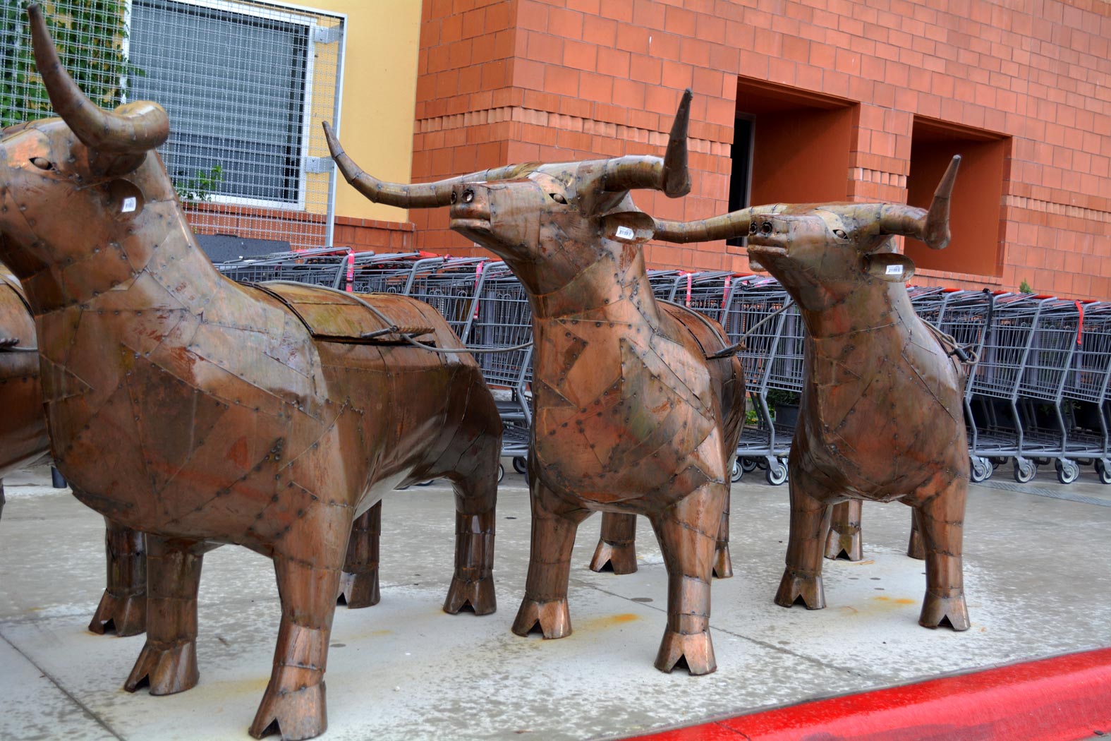 I drove out to get some last minute items for our Turkey Day. They live out in Burleson. These are out in front of the grocery store. If you need a big grill that looks like a longhorn you can find them here. They also have some 6' brightly colored roosters for your yard too.