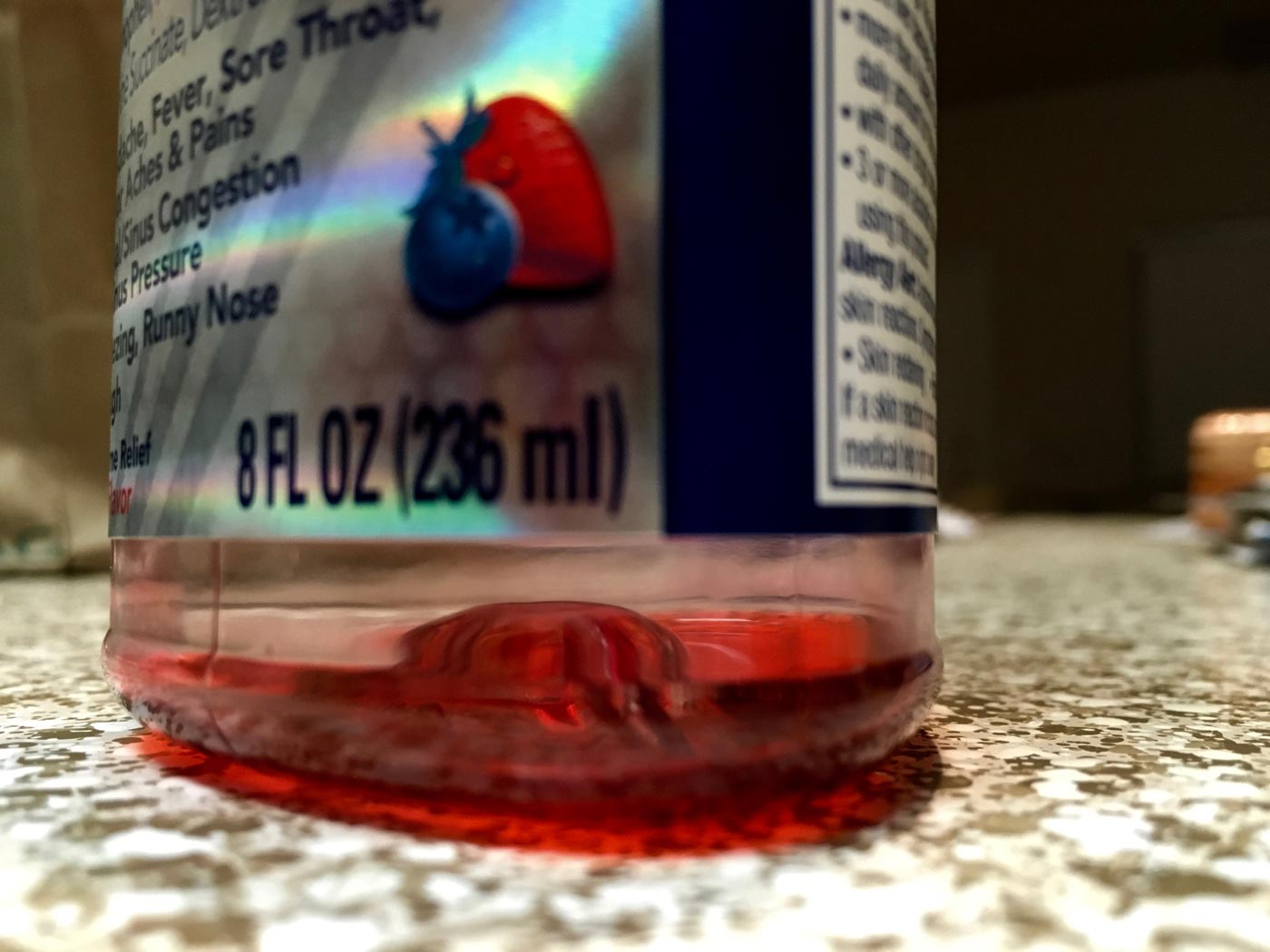 August 3, 2016 - Wednesday - Today was a bit of a rough day. Mom had a bit of a scare at the hospital this morning and dad had a rough time dealing with it. I guess we all did. Fortunately it was only a scare and things seemed to be looking up by the end of the day. I came home this is all I had left of my Nyquil. Tomorrow will be better.