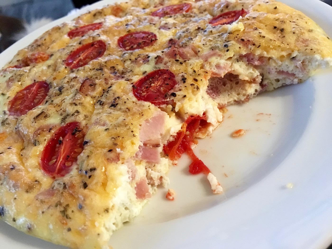 August 10, 2016 - Wednesday - Breakfast for dinner!!! I only had a handful of tomatoes so I decided to make myself a small frittata. No potatoes this time. Just a bit of ham and cheese and some Ziziki's seasoning. I love breakfast any time of the day. This was so quick and easy I might start making these more often.
