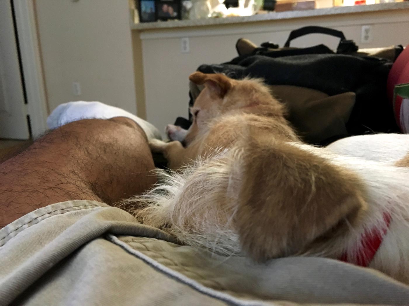 August 18, 2016 - Thursday - I think I'm going to have to pull Biscuits teeth out or stop letting them sleep in the bed. I really liked these sheets too.