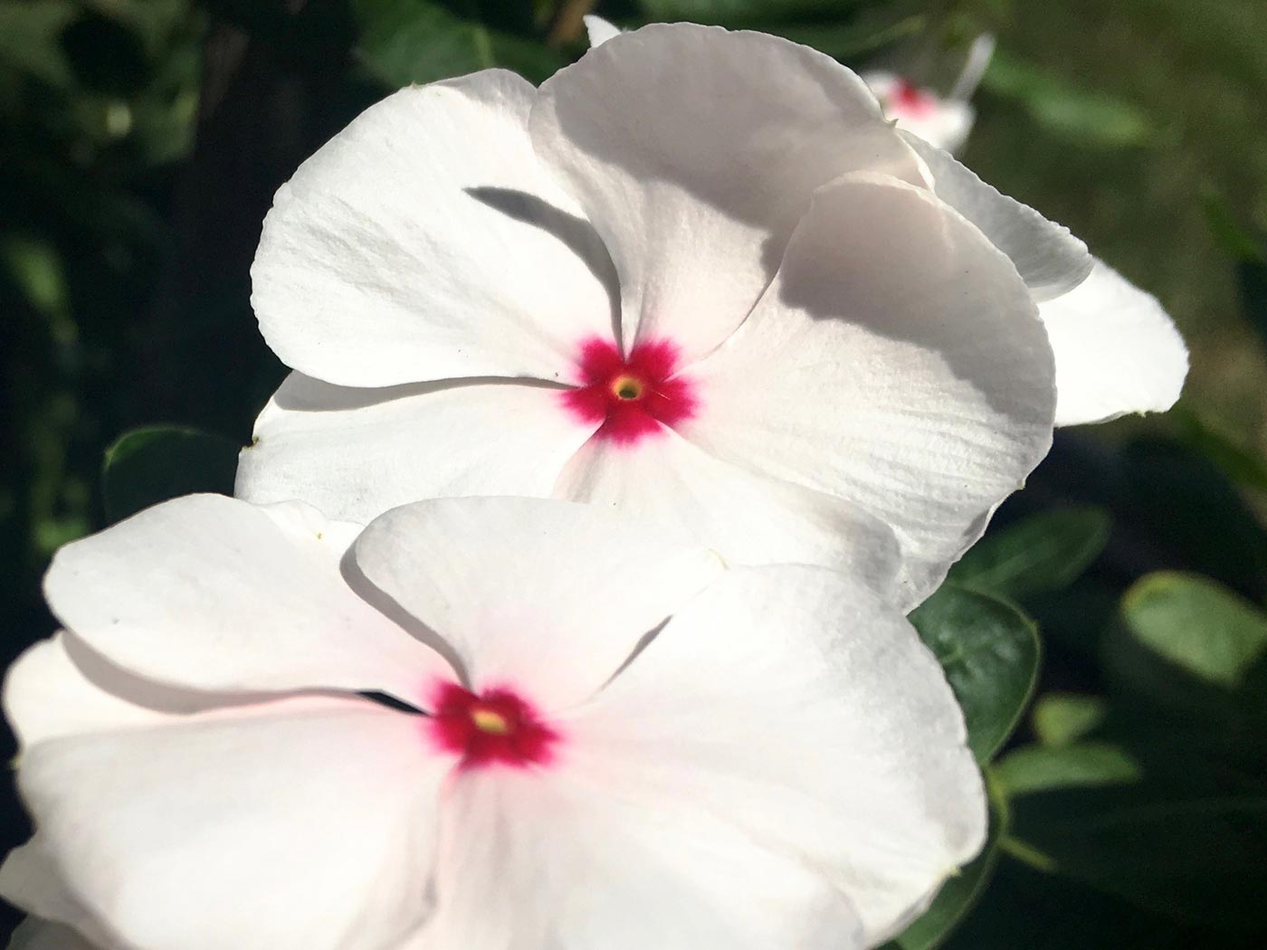 August 25, 2016 - Thursday - A long while back I took a photo of flowers like these on my mom's porch. My sister has some now. When we were in high school there would be times you'd pull the shower curtain back and the tub would be full of hanging and potted plants. Mom went from killing fake plants to being able to grow anything.