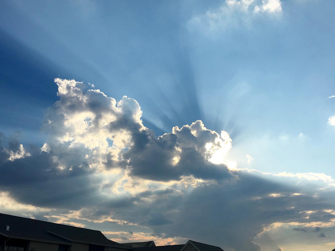 August 31, 2016 - Wednesday - When I was little my parent's gave me a children's picture bible and on the cover was an illustration of Jesus walking down the rays of sunshine as the sun was breaking through the clouds kinda like you see here. For whatever reason that picture has always stuck in my mind and I think consciously or unconsciously I think that when I see the sun like this.