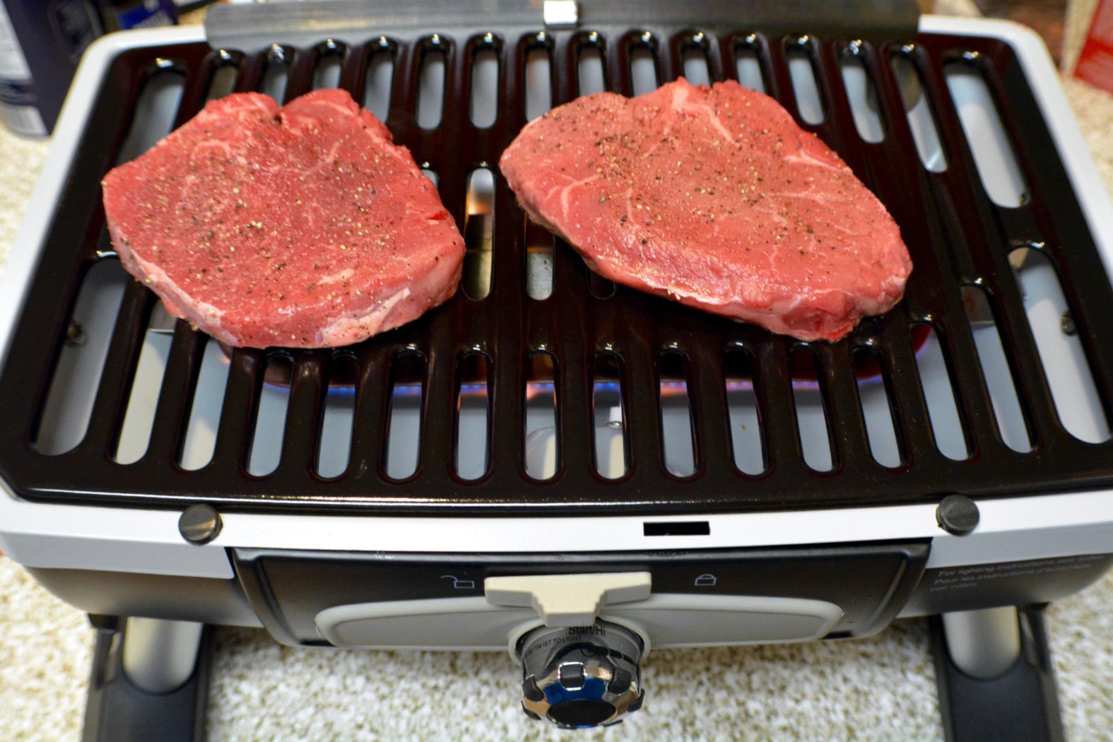 June 24, 2016 - Friday - A while back a friend who is very good at shopping came across this little table top gas grill. I picked up a couple of little steaks to test it out. Hoping it will be good for more than burgers and hot dogs. With a little more practice this will work just fine for steaks. It will be great for camping and grilling on my little patio.
