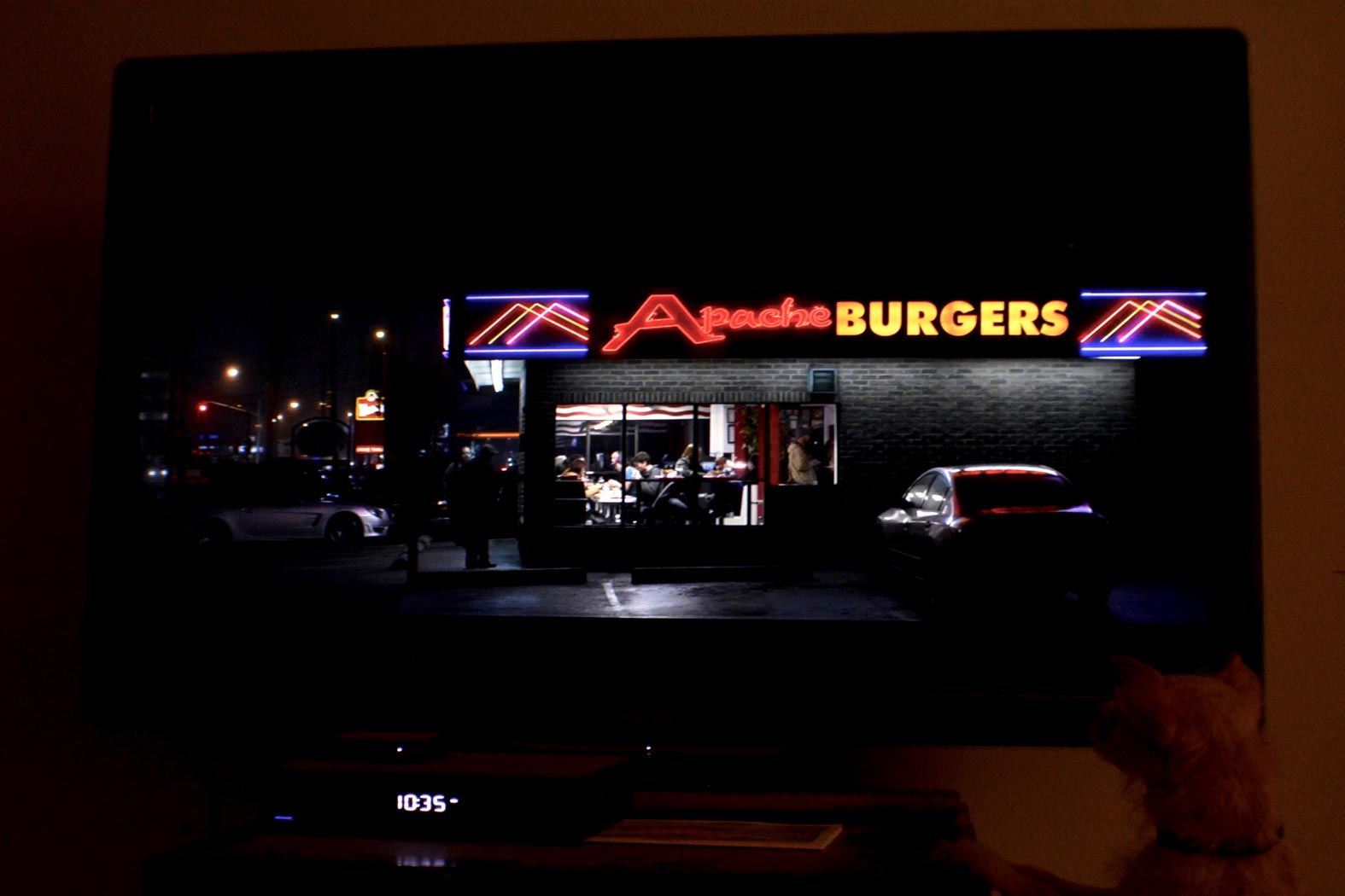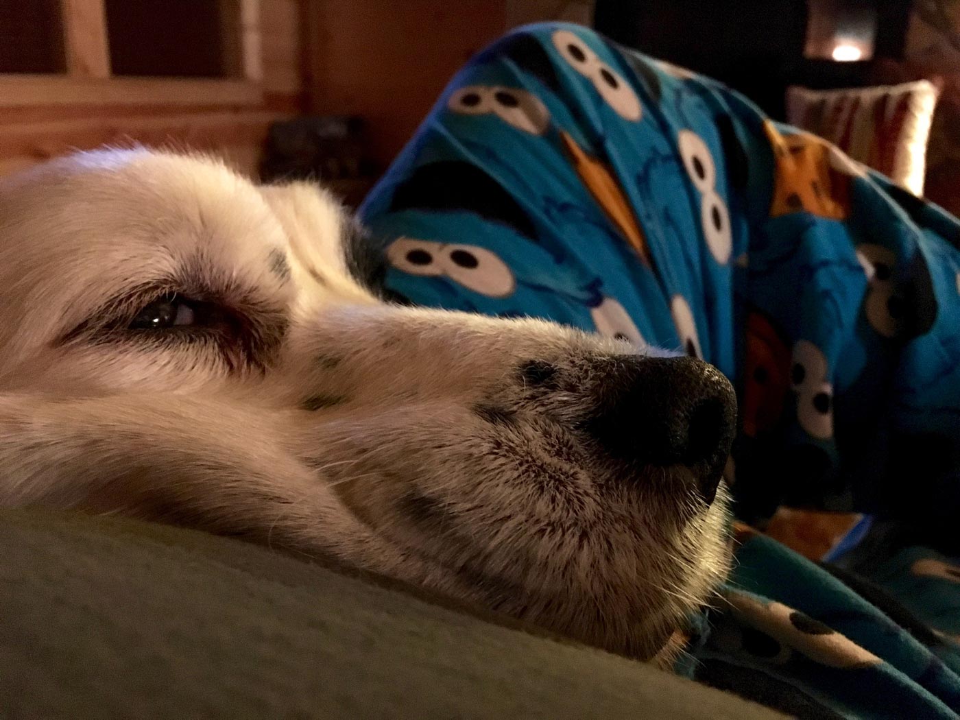 March 31, 2016 - Thursday - After work on I picked up dinner for Riley and I and came home. She was looking for something to watch on Netflix and came across this. Pancake seemed to really like this one.