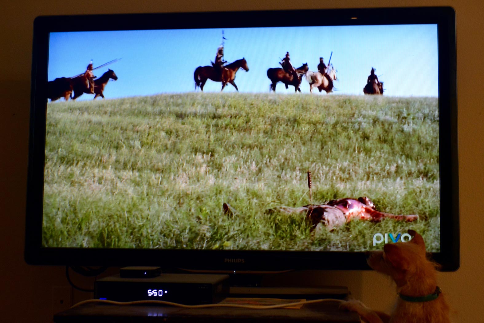 March 11, 2016 - Friday - I know I just posted of photo of Pancake watching TV the other day, but today was pretty uneventful. I think I'm going to start a new collection of Pancake watching the top 100 movies of all time. This is Dances with Wolves.