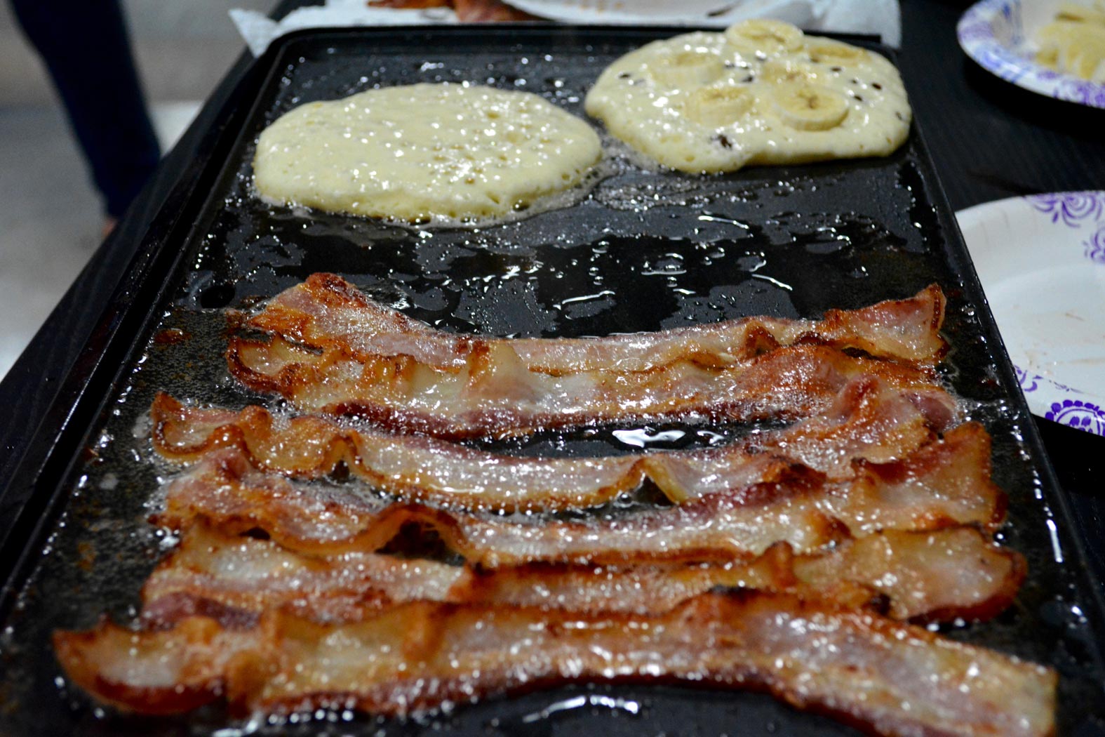March 18, 2016 - Friday - I know this almost looks exactly like my photo from one of our last client breakfasts but bacon and banana chocolate chip pancakes on the griddle is hard to pass up and seeing how I have planned to do nothing this evening this is probably going to be the highlight of my day.
