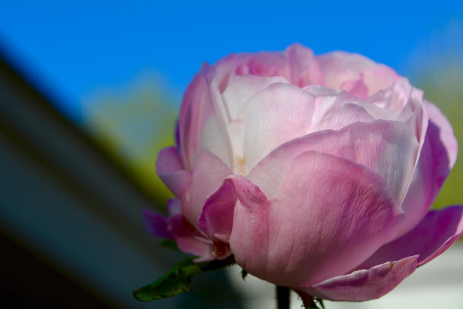 March 19, 2016 - Saturday - I spent the afternoon and evening with a friend. We did some shopping and then went out for dinner. Her roses are starting to bloom already. This is at the top of an 6 foot tall bush. It was reaching up just enough to catch the sunlight as it blew in the breeze.