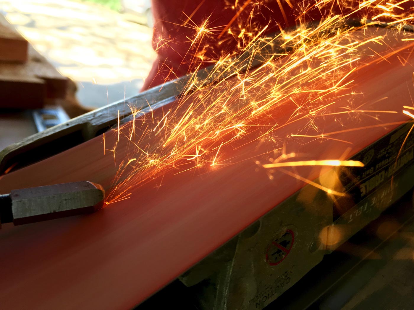 March 13, 2016 - Sunday - Growing up, when my dad was using a tool in a manner it was not designed for, he would always tell me, "I better never see you doing this." This bit was too long for our drill press and the material we were using. We had to shorten it somehow. The belt sander was just laying there.