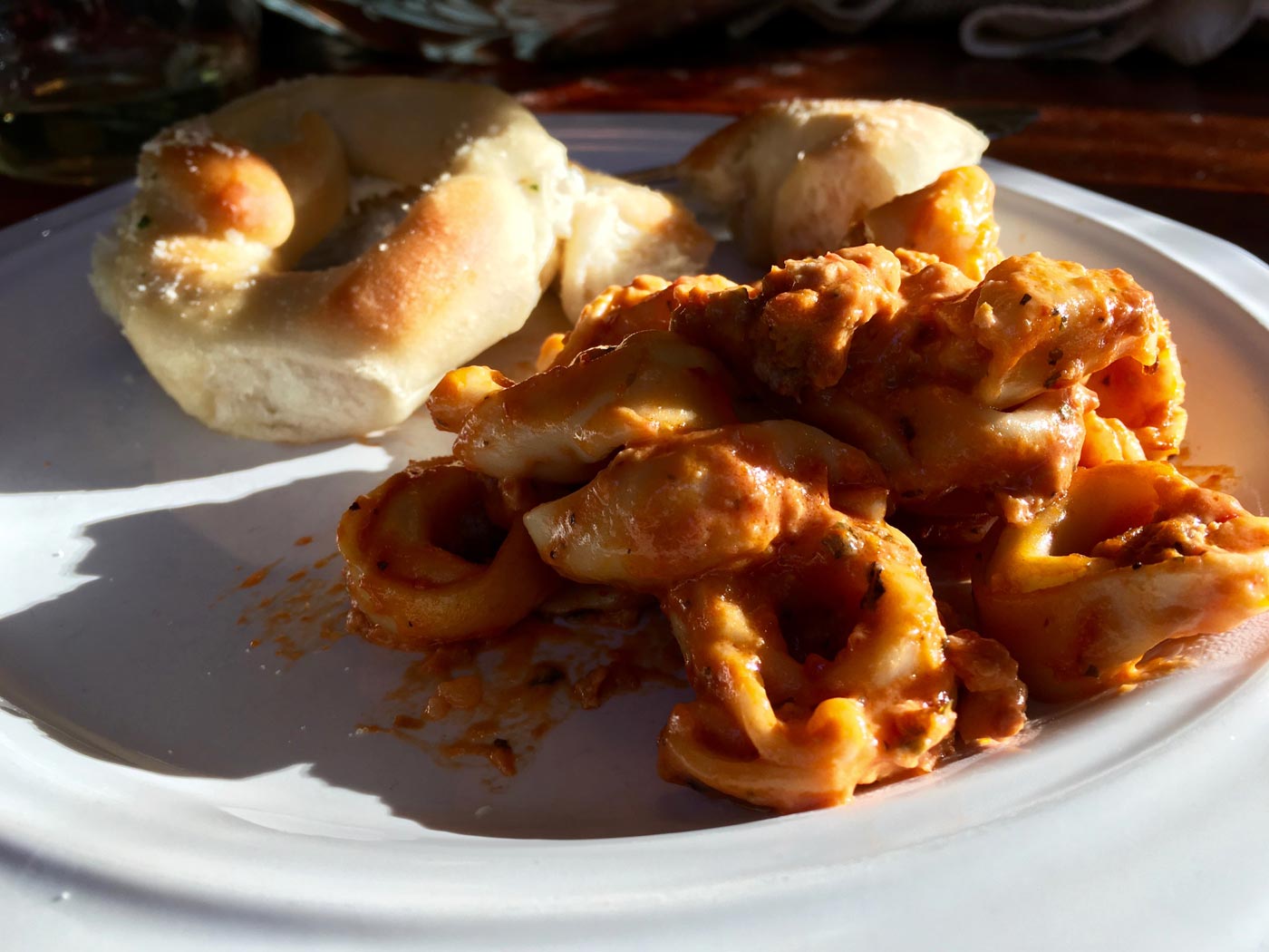 March 20, 2016 - Sunday - I picked up dinner for me and a friend. Mmmmmm... Tortellini Bolognese. I love the way the sun comes through her house at this time of the year. I wish my place had more natural light like this.