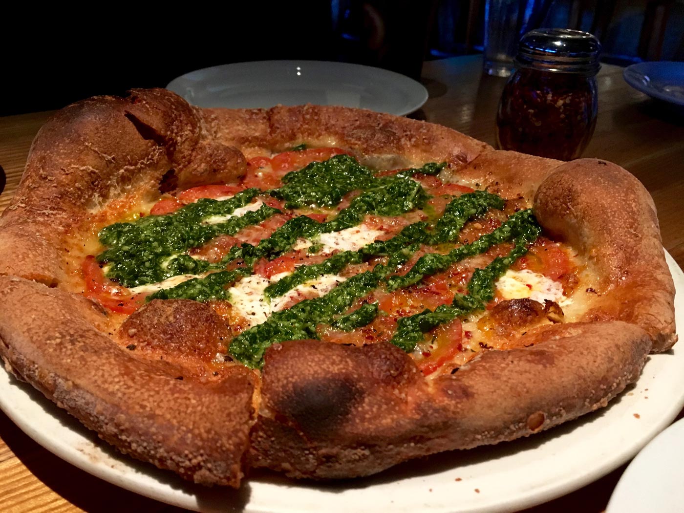 March 22, 2016 - Tuesday - I met a friend for dinner tonight. This our third time coming to this place and we've had the same thing every time. We did get a different dessert this time. This pizza doesn't have any sauce, just really thinly sliced tomatoes that cook down so good. We split a salad too. Maybe next time I'll take a photo of the salad.
