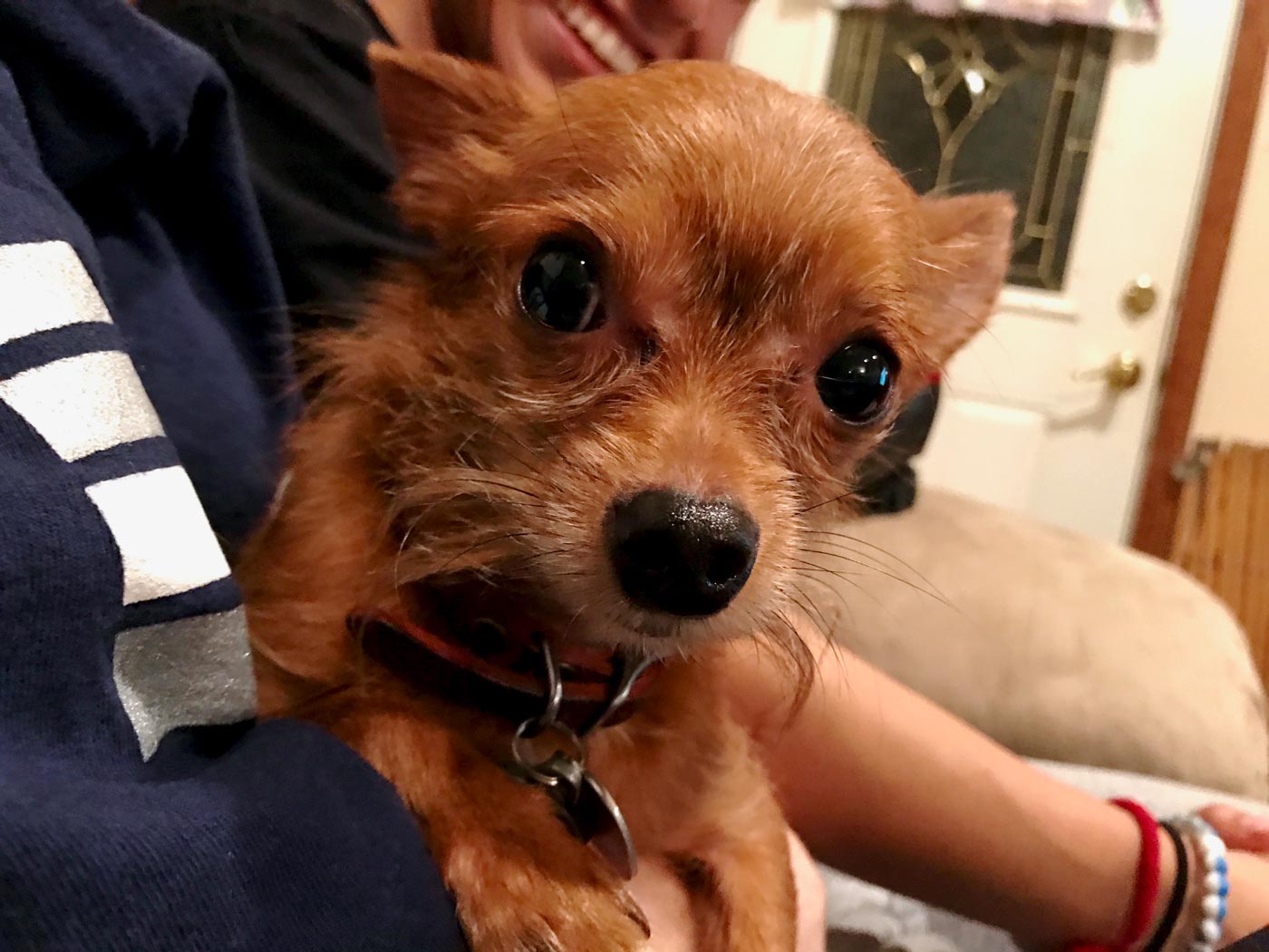 February 5, 2017 - Sunday - Went to my brother's for the Super Bowl. Today is his and my sister's birthday too. We celebrated with lots of BBQ and chocolate cake. This is my niece's dog. I like almost all animals but this is the worst dog ever. I feel bad that he's so nervous and anxious but he is even more annoying than the two I have at home.