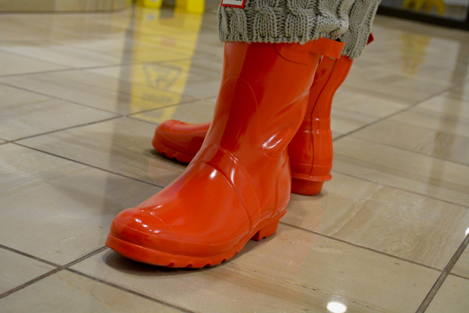 January 18, 2017 - Wednesday - The new girl at work came in wearing these really cool rain boots. We have a traffic cone in our office from an incident a few months back that happens to live under her desk. I pointed out they matched and I wanted to take a picture of her boots with the cone but that seems inappropriate taking a photo under her desk.
