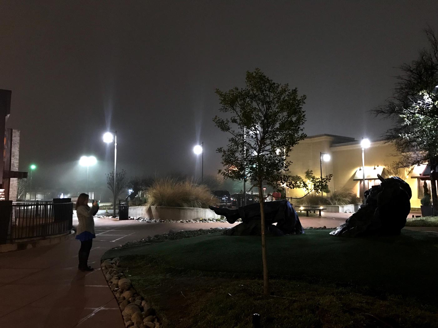 January 14, 2017 - Saturday - I had a flare up that started yesterday and made me cancel my plans earlier today but I wasn't going to miss meeting my friend and my Goddaughter for dinner. This is her taking a picture of a guy relaxing on the grass in the evening fog. Glad I got to get out and have dinner with them. It's alway a good time.