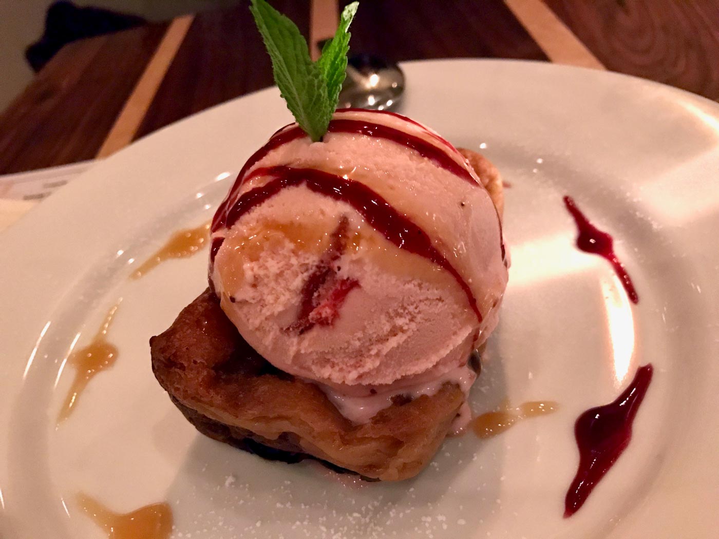 January 23, 2017 - Monday - I met a friend for dinner after work. We tried a new Mexican place. My enchiladas were really good, but she wasn't too impressed with her dish. We shared this blueberry bread pudding. I think we both agree this was good.