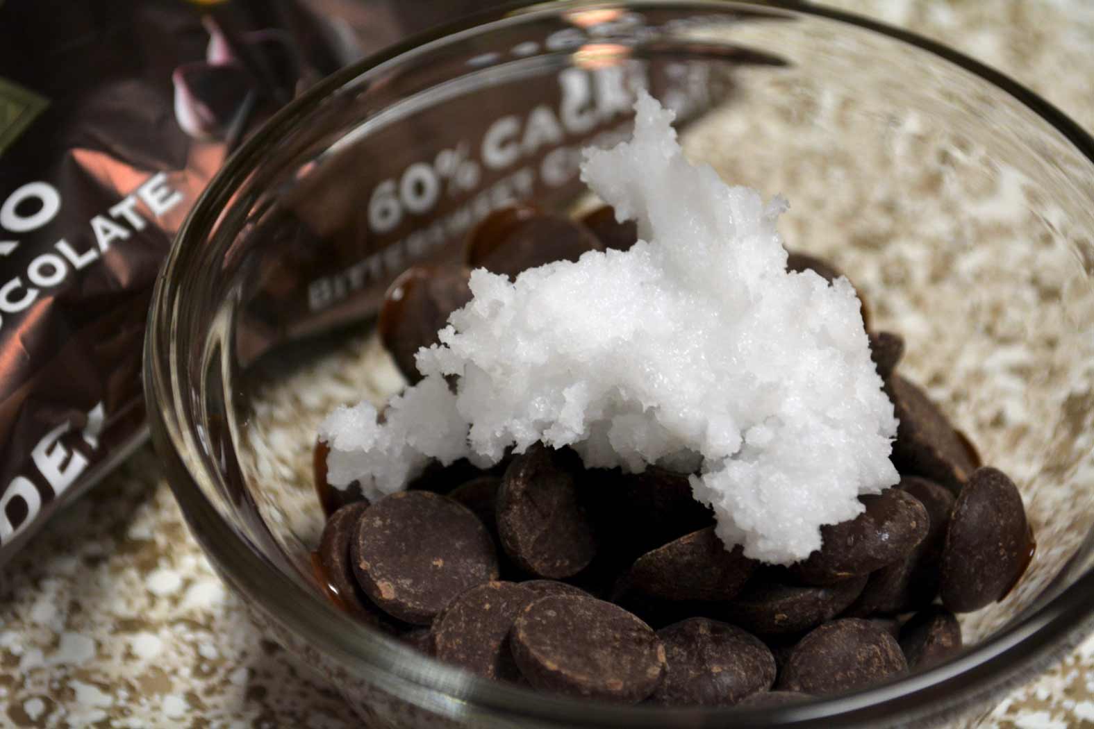 April 10, 2017 - Monday - After dinner I was craving something sweet. I looked in my cabinet and saw I had this, the chocolate and coconut oil. I still had bananas too.