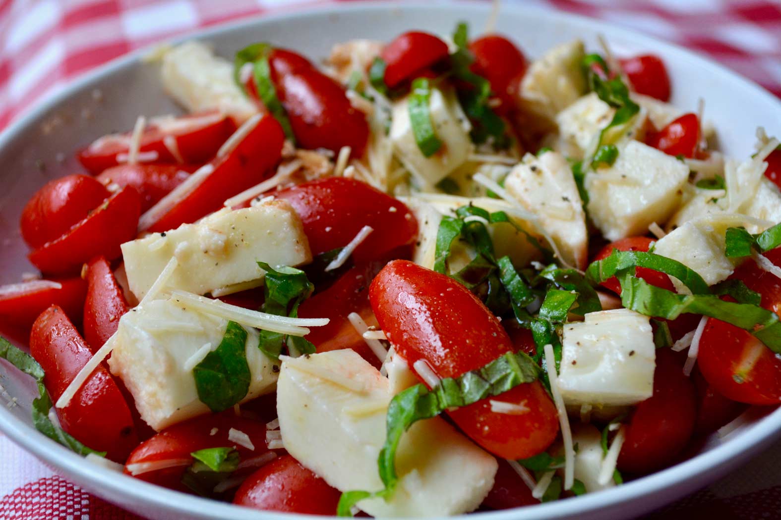 April 21, 2017 - Friday - Riley and I had a dish like this while in Rome. I saw it yesterday while looking through the photos for Tuesday's post. I remembered a friend gave me some fresh basil from her garden so I decided to pick up the rest of the stuff at lunch and make a snack at the office. We had wine too.