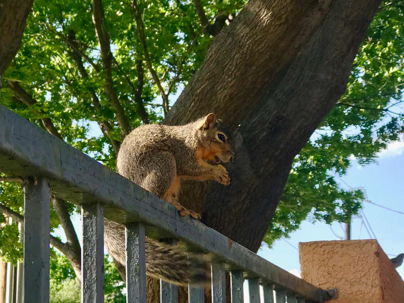 April 4, 2017 - Tuesday - I got out to walk the dogs after work. Fortunately, the little ones didn't see this guy having his early evening meal on the fence.
