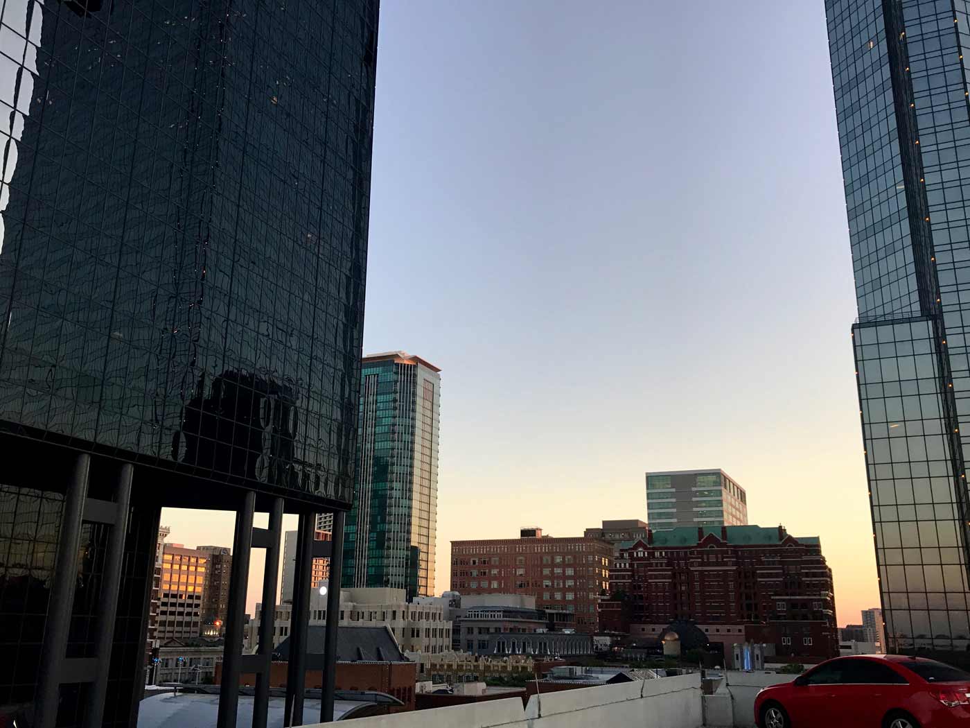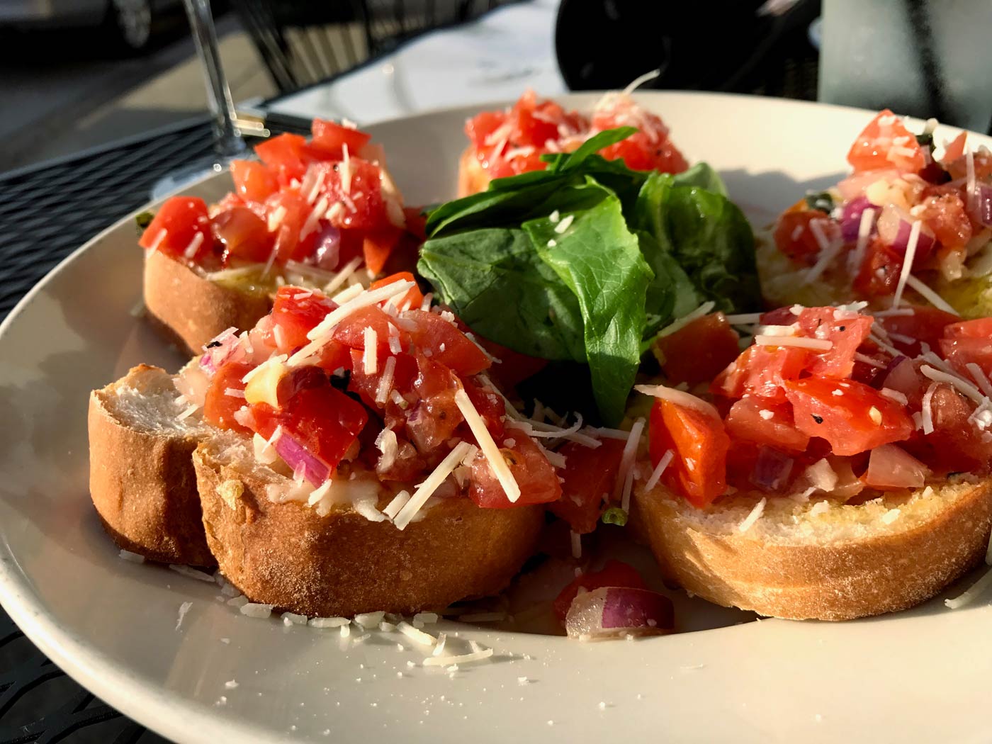 April 12, 2017 - Wednesday - Drove out to Grapevine to meet a friend for dinner. We went to a little Italian place on Main. I got a great parking spot. This was set on the table not too long before the sun went behind the buildings across the street. The tomatoes on this were really good. Great company and good food.