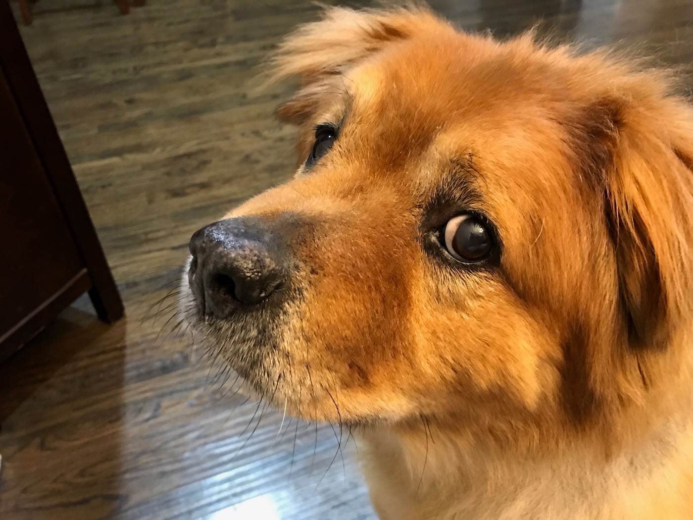 April 15, 2017 - Saturday - This is Louie, he's been my photo of the day before. We're friends because I usually "accidentally" drop chips for him. I usually make guacamole when I visit him, but today I didn't, so no chips. He's kinda giving me the side eye because I didn't share any of the steak we had tonight.