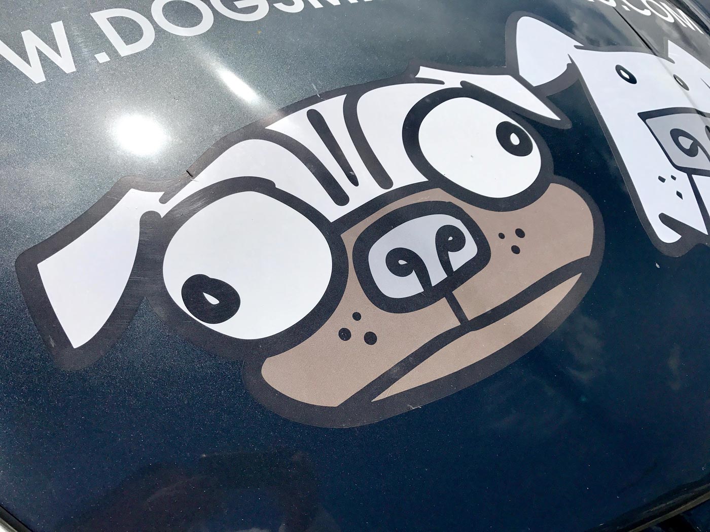 August 7, 2017 - Monday - Was still moving pretty slow today, but got out to the grocery store before going in to the office. I parked in front of this minivan at the store. It was some dog training company. As soon as I pulled in I though this looked a lot like Biscuit. She's so googly-eyed.