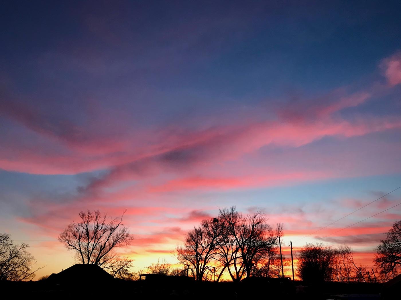December 23, 2017 - Saturday - Went out to the country to stay with the family for the holidays. It was a beautiful sunset this evening. The only bad thing is my dad's heater went out so we had at make it through the night with some space heaters. It wasn't too bad it was a bit chilly.