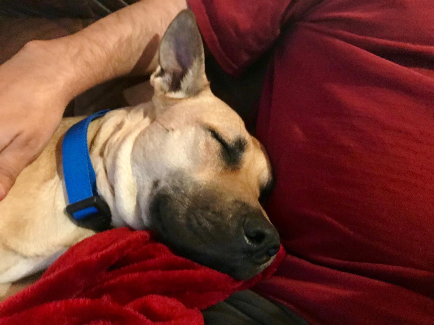 December 26, 2017 - Tuesday - I have a cousin who's staying with my dad while he's remodeling his own home. Yesterday he was out and rescued this sweet girl off the highway in Ft. Worth. He took her today to check for a microchip but she didn't have one. She's so sweet and playful with his other dog and loves to relax on the couch and be petted.