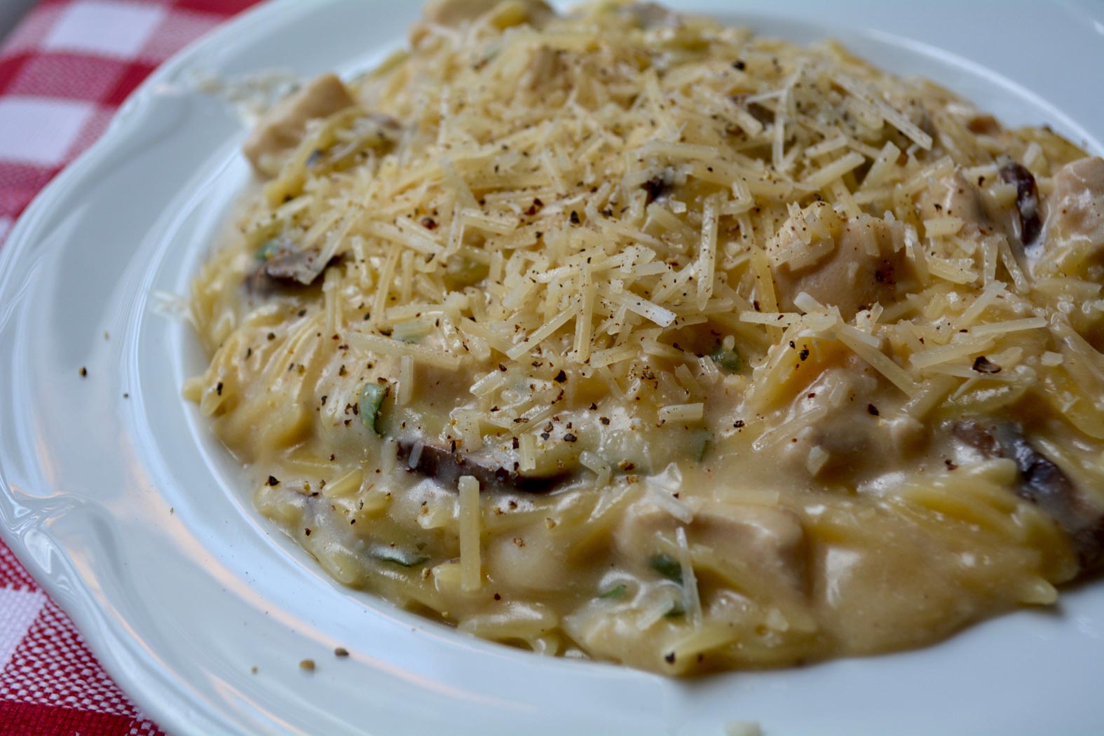 July 9, 2017 - Sunday - Today I was feeling better than I have in forever. I woke up kinda early and did a lot of cleaning and then a whole lot of cooking. I made this creamy Chicken and Mushroom Orzo for dinner then made a frittata to have for breakfast for the week. I even made a cake.