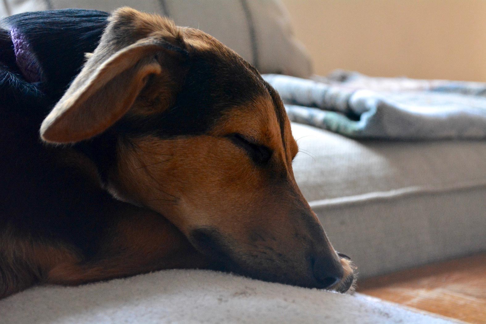 July 29, 2017 - Saturday - After a long day of chasing and harassing Biscuit, Mia was all tuckered out. She's only about 9 months old so she's still such a playful puppy. But when she gets tired she likes to sleep on her back with her tongue poking out a little bit.