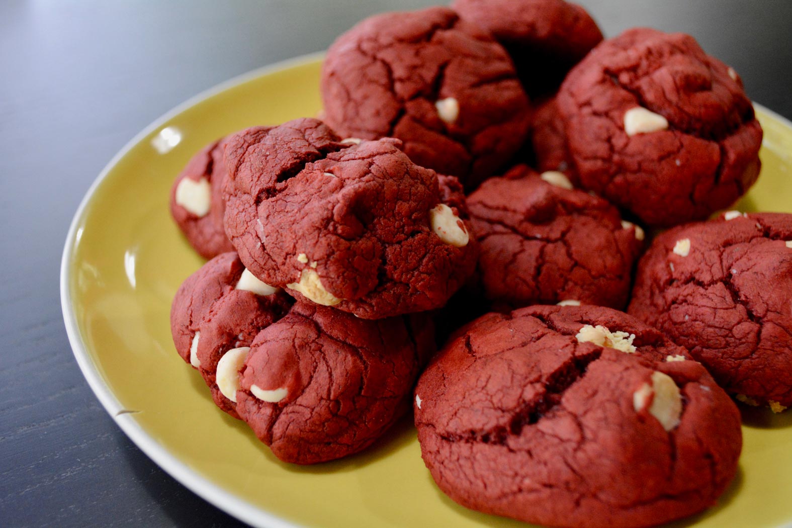 July 18, 2017 - Tuesday - One of the girls at work made these for us today. They're red velvet white chocolate chip cookies. And they are delicious.