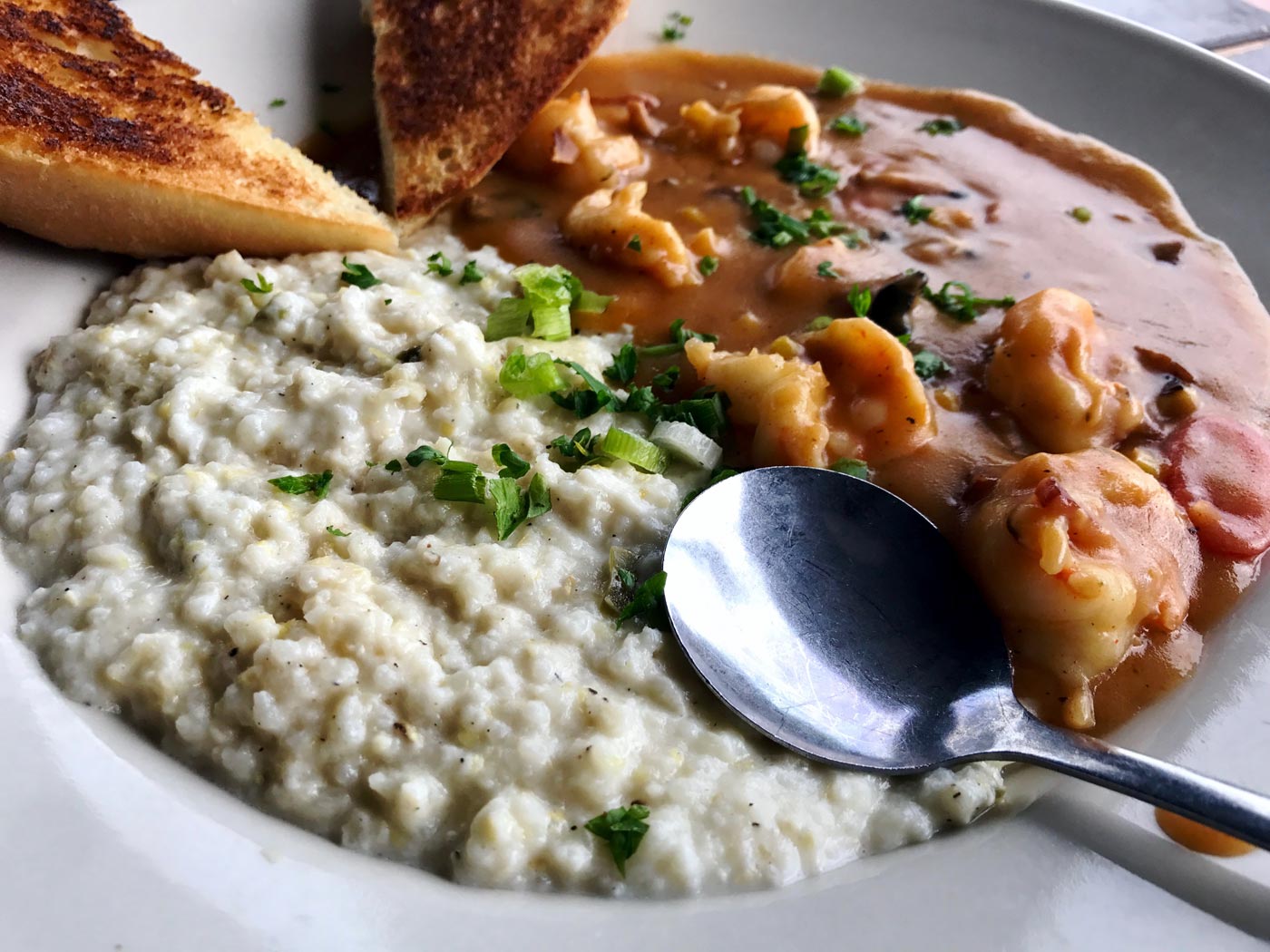 July 6, 2017 - Thursday - I met a friend for dinner. We usually go to a handful of places that we frequent, but we're trying to find some places out of the norm. She was craving seafood. I'm not a fan of almost all seafood but I didn't get this way being that picky. They had shrimp and grits that were more southern than Cajun. Very, very good.