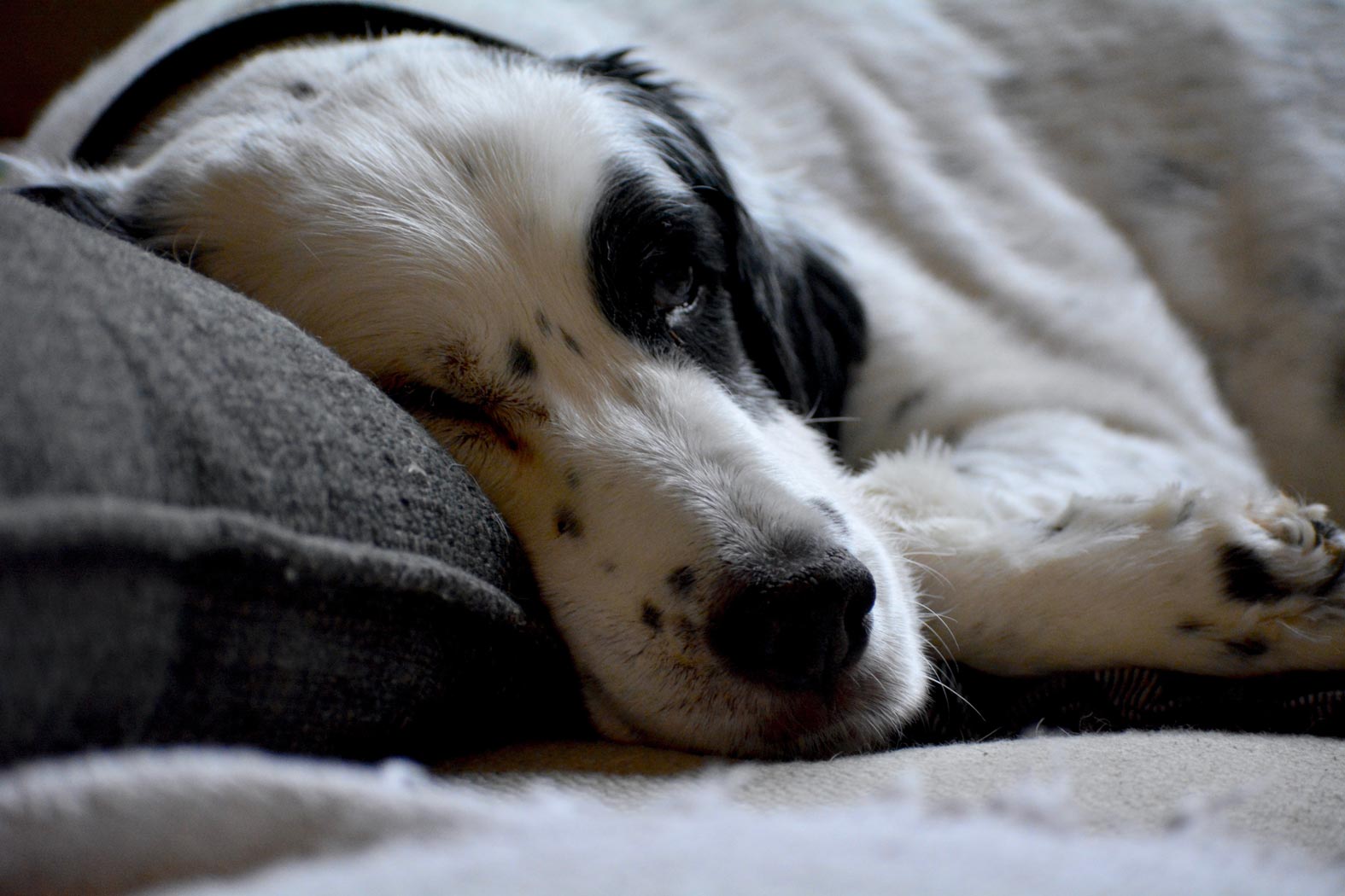 September 30, 2017 - Saturday - This is Oliver. This is the bulk of what Oliver loves to do. He's a huge fan or couches, especially if they have a blanket laid out on them. He assumes that means that's his spot. I was having a minor flare up in my ankle so it's nice that like Grace, he's a very low energy, calm dog. He just needs dinner and a few walks a day.