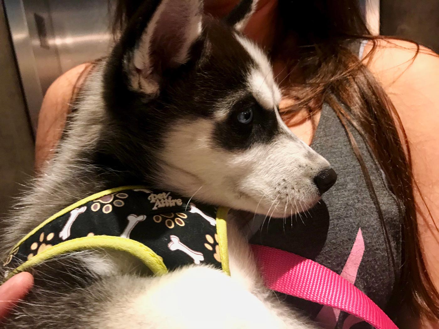 September 28, 2017 - Thursday - My boss who is also an artist had a Pop-up show along with another artist at the Lofts at Mockingbird Station. There were lots of tenants coming through and quite a few of them had dogs. This young lady came through with this beautiful, blue-eyed husky.